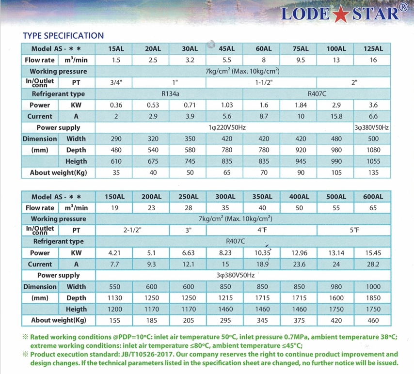 Catalogues máy sấy khí Lode star (dòng AS-AL)